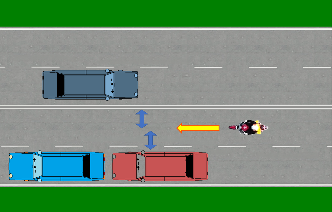 In this case, you need to combine road positioning with buffer space and checking behind you.